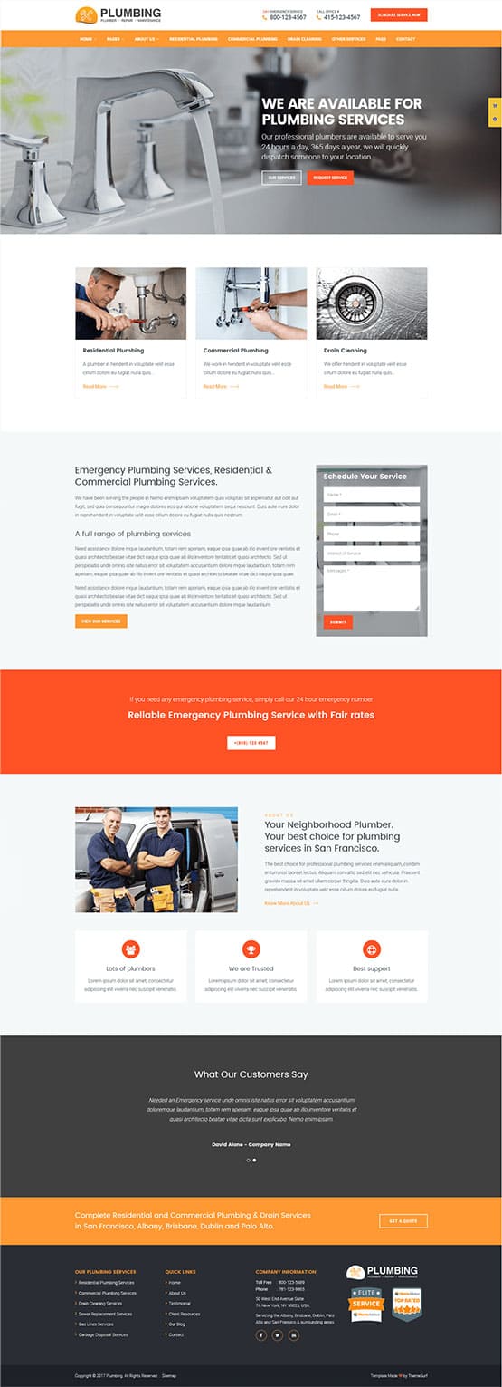 PROFESSIONAL PLUMBING WEB DESIGN DEVELOPMENT SERVICES IN USA